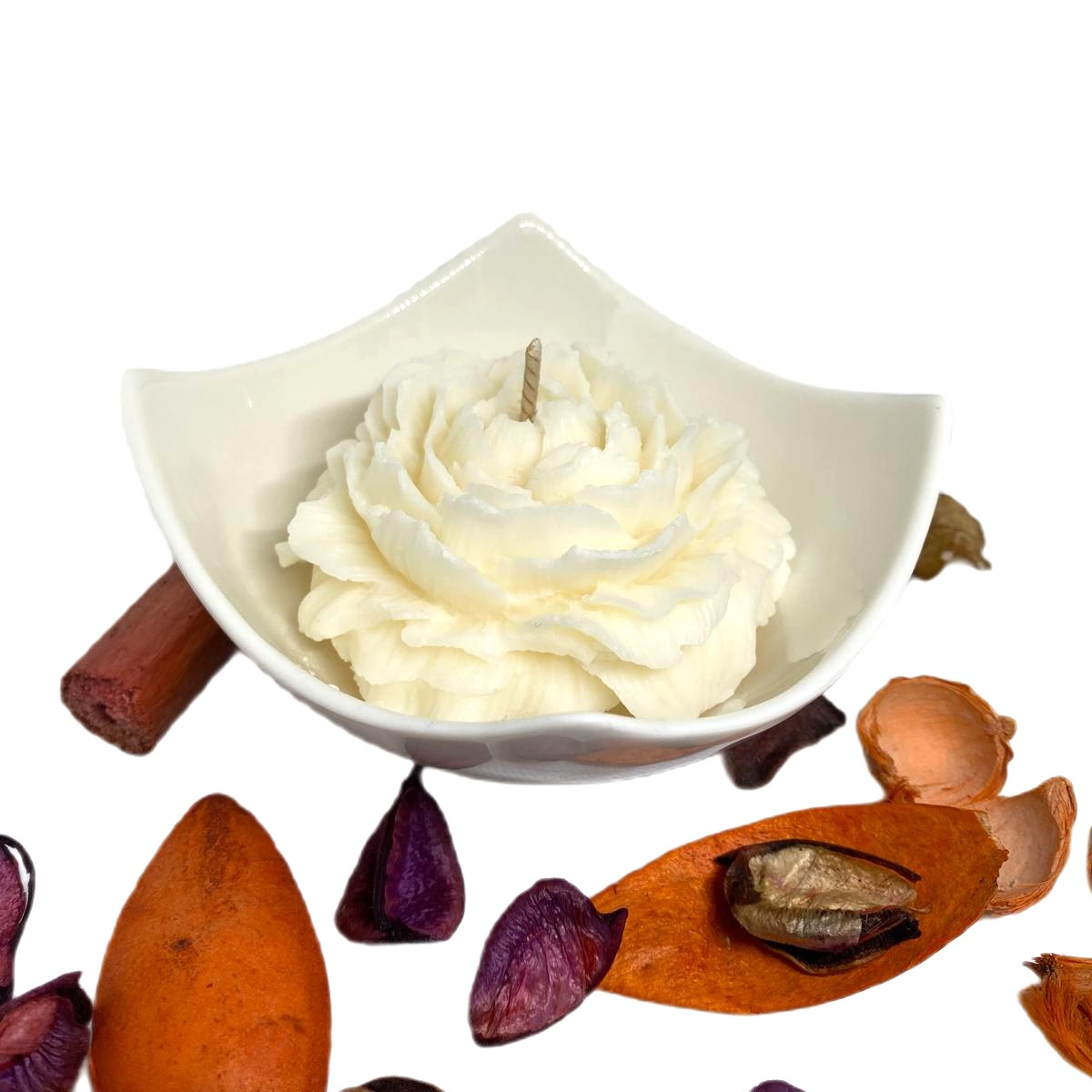 Fabricat din ceară de soia 100%, o resursă regenerabilă și non-toxic, biodegradabilă, ECO-Friendly, vegană și vegetală, la care a fost adăugat ulei de înaltă calitate, fabricat în Franța sau Anglia, atestat IFRA.